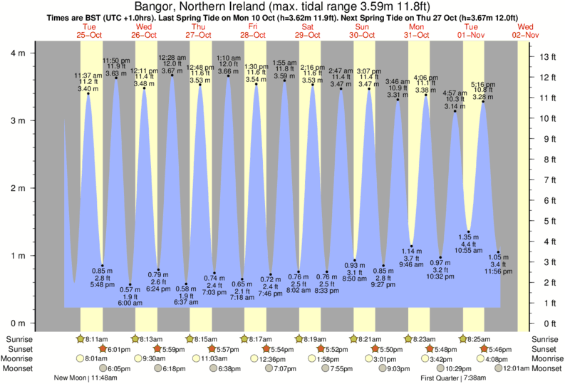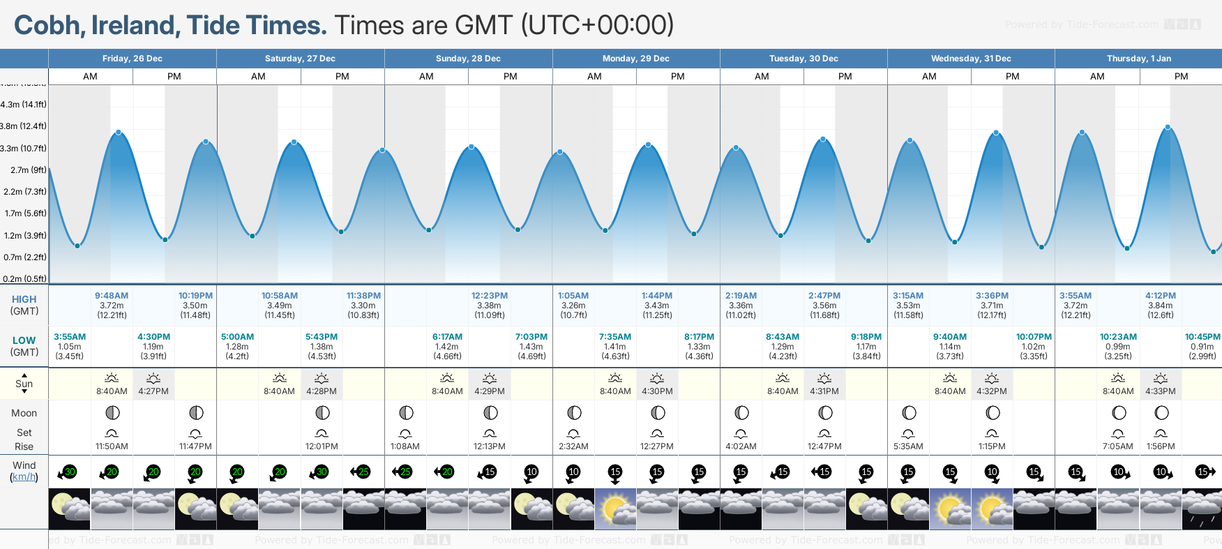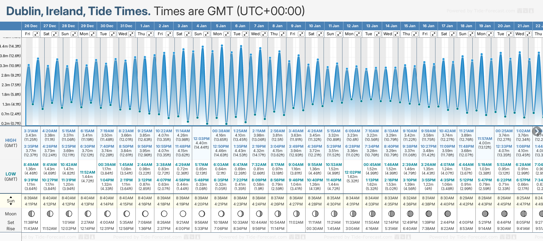 Tide tables and solunar charts for ireland: Expect high tide times to be correct to about ±8 minutes (one standard deviation).